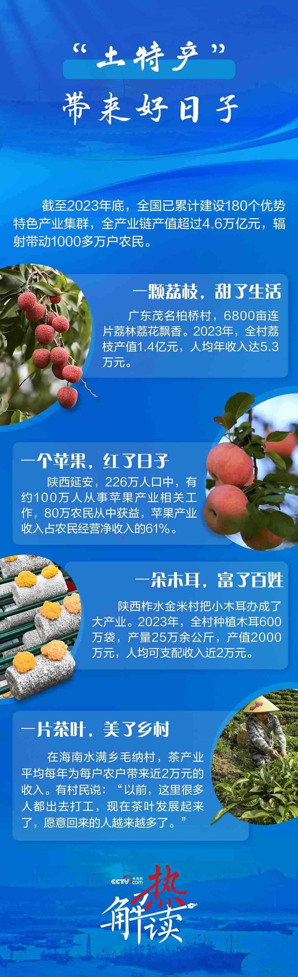 黨的二十屆三中全會(huì)通過的《中共中央關(guān)于進(jìn)一步全面深化改革、推進(jìn)中國式現(xiàn)代化的決定》提出,堅(jiān)持農(nóng)業(yè)農(nóng)村優(yōu)先發(fā)展,完善鄉(xiāng)村振興投入機(jī)制。2024年中央一號文件就“提升鄉(xiāng)村產(chǎn)業(yè)發(fā)展水平”進(jìn)行專章部署,鼓勵(lì)各地因地制宜大力發(fā)展特色產(chǎn)業(yè),支持打造鄉(xiāng)土特色品牌。