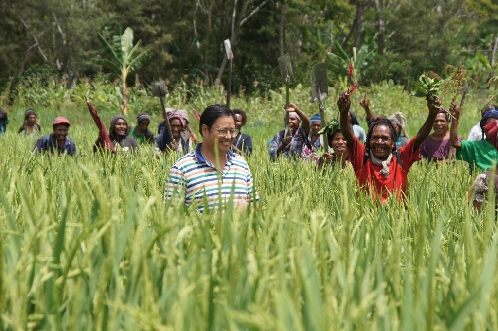 △ 2019年12月17日,首次參與中國(guó)援巴新旱稻項(xiàng)目的巴布亞新幾內(nèi)亞農(nóng)戶(hù),看到自己種植的旱稻長(zhǎng)勢(shì)喜人。