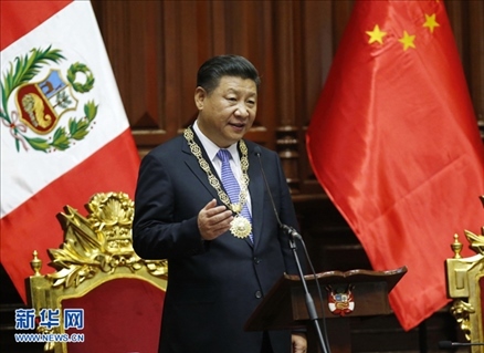 當地時間2016年11月21日,國家主席習近平在秘魯國會發(fā)表題為《同舟共濟、揚帆遠航,共創(chuàng)中拉關系美好未來》的重要演講。新華社記者 鞠鵬 攝