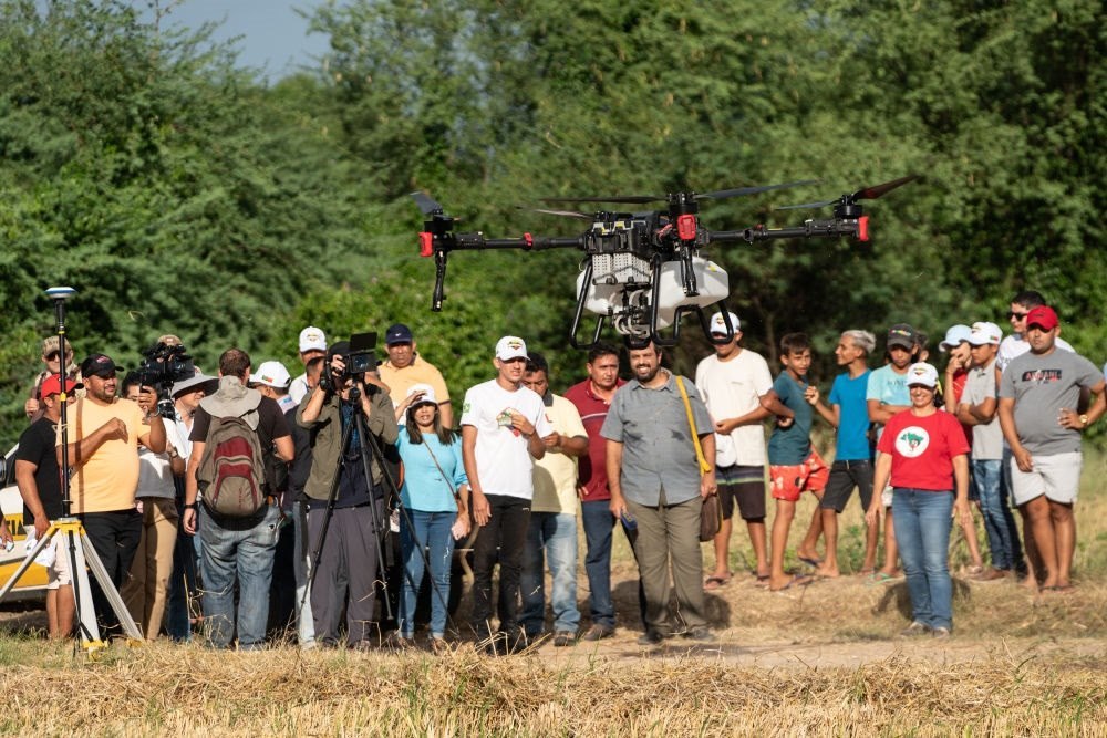 2024年2月2日,中巴農(nóng)業(yè)機械化合作示范項目啟動儀式在巴西阿波迪舉行,第一批來自中國7家農(nóng)機企業(yè)共31臺(件)設(shè)備正式交付給巴西農(nóng)村勞動者組織。這是人們觀看一款中國生產(chǎn)的農(nóng)用無人機。
