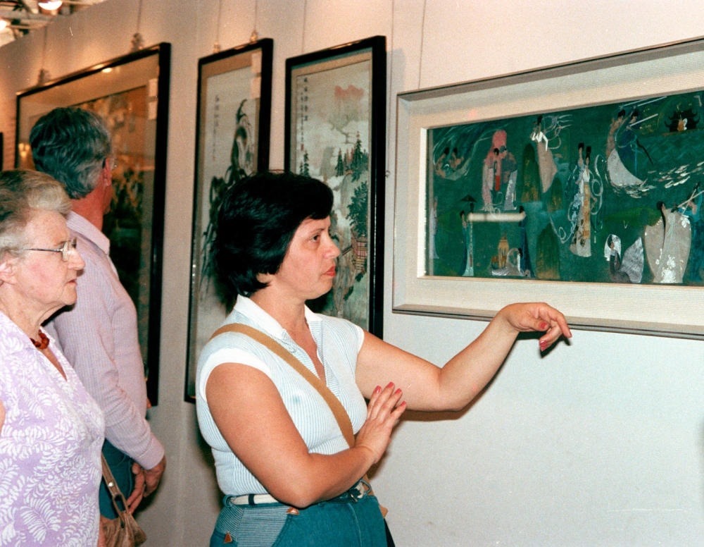 1983年5月24日至7月31日,中國經(jīng)濟貿(mào)易展覽會在巴西圣保羅和里約熱內(nèi)盧舉辦。這是巴西觀眾在展覽會上欣賞貝雕羽毛畫。