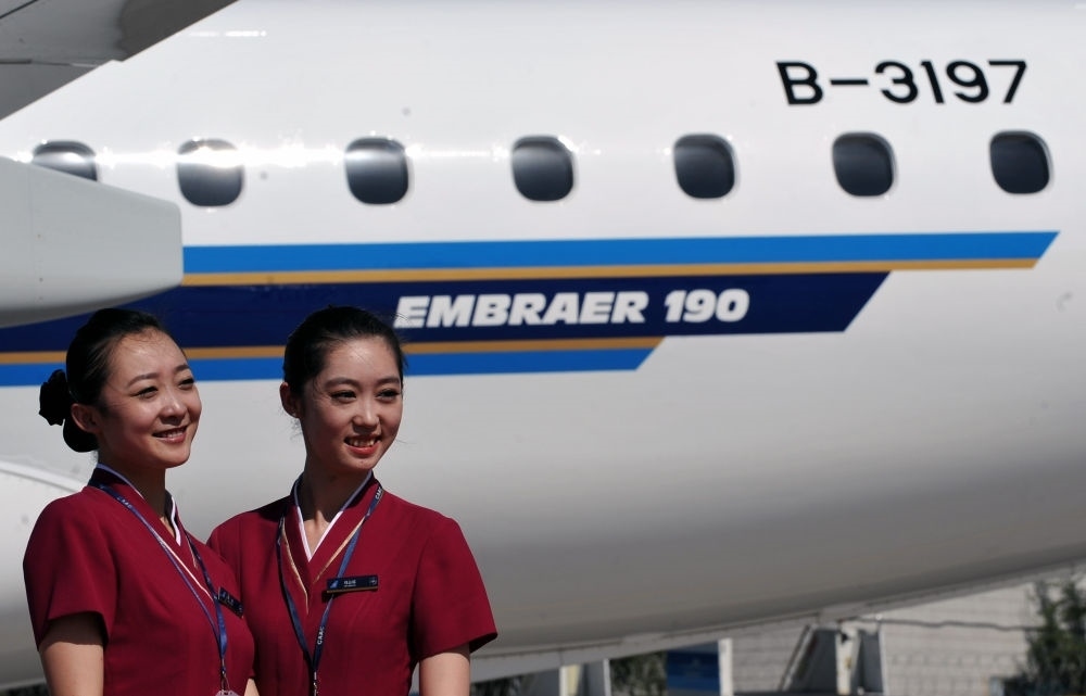 2011年8月16日,巴西航空工業(yè)公司生產(chǎn)的EMB190噴氣式飛機抵達烏魯木齊國際機場,正式加入南航新疆分公司機隊。這是南航空乘人員在飛機前合影。