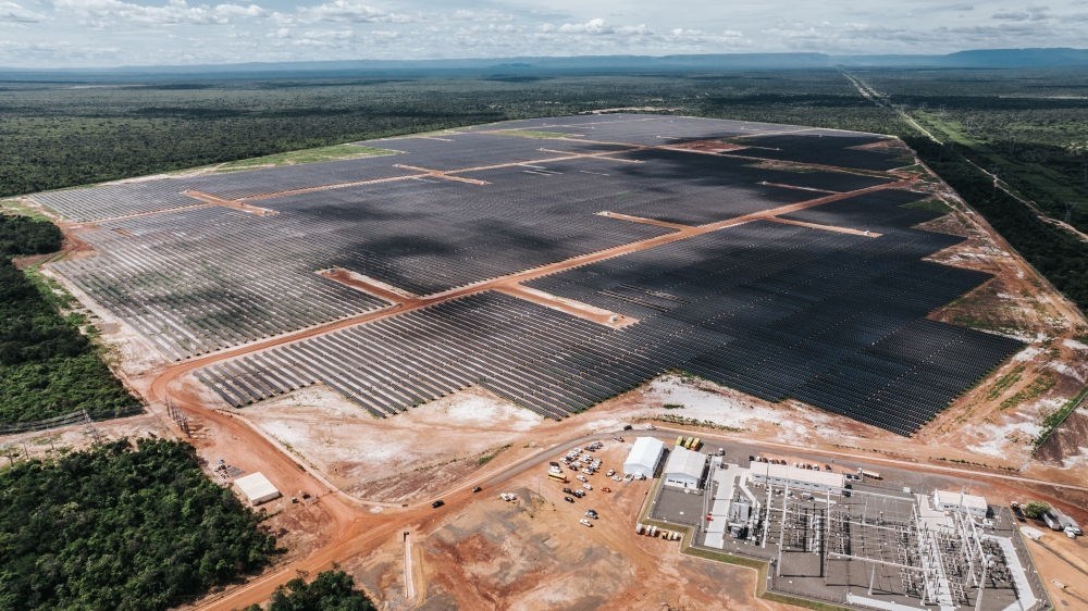 2024年6月7日,由中國國家電力投資集團公司巴西公司投資并主導建設(shè)的巴西馬蘭加圖光伏電站舉行投產(chǎn)儀式。這是無人機拍攝的馬蘭加圖光伏電站。