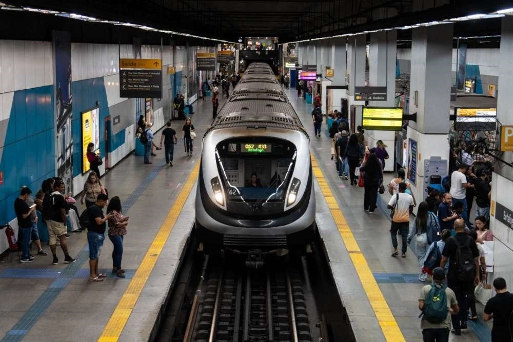 2024年11月13日,一輛中車長客制造的地鐵列車駛?cè)氚臀骼锛s熱內(nèi)盧博塔弗戈地鐵站。