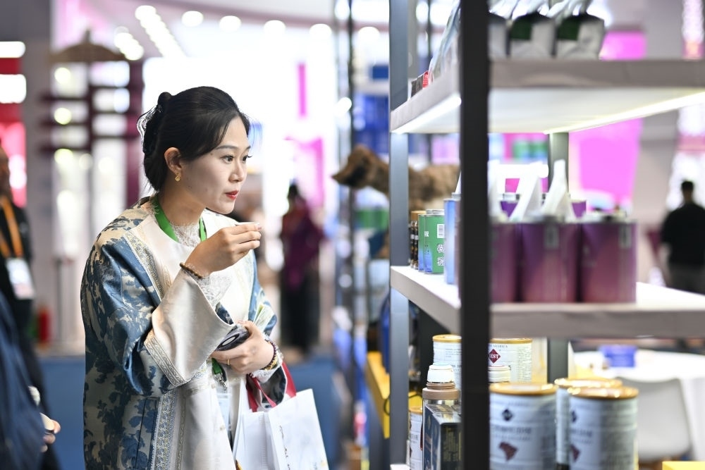 2024年11月6日,參會人員在上海舉行的第七屆進博會食品及農(nóng)產(chǎn)品展區(qū)品嘗來自巴西的咖啡。