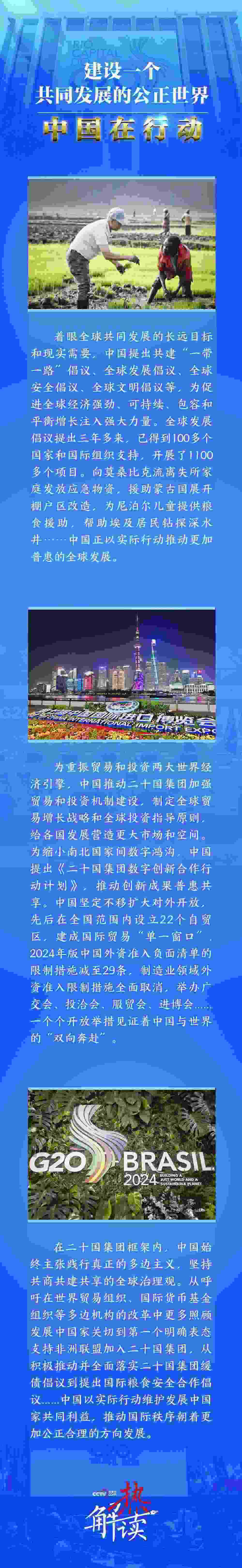 從倡導(dǎo)建設(shè)持久和平、普遍安全、共同繁榮、開放包容、清潔美麗的世界,到弘揚(yáng)和平、發(fā)展、公平、正義、民主、自由的全人類共同價(jià)值;從提出共建“一帶一路”倡議、全球發(fā)展倡議、全球安全倡議、全球文明倡議,到倡導(dǎo)平等有序的世界多極化和普惠包容的經(jīng)濟(jì)全球化……建設(shè)一個(gè)共同發(fā)展的公正世界,中國的立場、主張始終未變,中國的行動(dòng)力從未滯后。