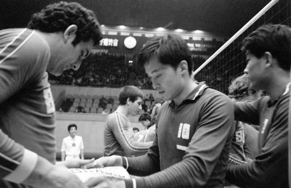 1978年5月18日至25日,北京國際排球友好邀請賽成功舉行。中國隊與巴西隊運動員在比賽前互贈禮物。