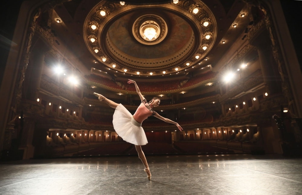 2019年5月24日,中央芭蕾舞團演員方夢穎在巴西里約熱內盧市政劇院排練。中央芭蕾舞團攜《大紅燈籠高高掛》來到巴西,為當地民眾獻上帶有濃郁中國元素的精彩表演。