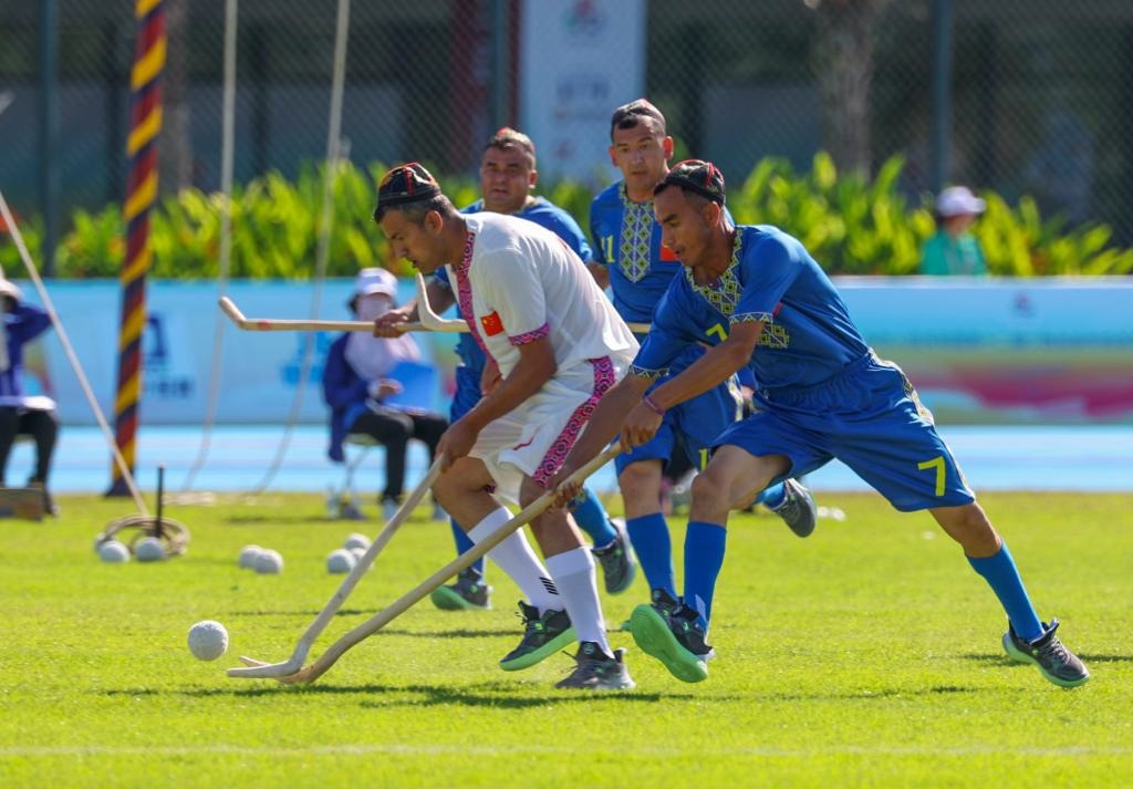 ??山海難擋情意濃。在24日的表演項(xiàng)目里,10多名來自新疆和田地區(qū)于田縣各行各業(yè)的隊(duì)員帶來了麥熱球表演。山高路遠(yuǎn),他們歷時(shí)三天才抵達(dá)三亞。“我們想向全國人民展示麥熱球這項(xiàng)運(yùn)動(dòng),在場(chǎng)外和大家多交流,讓各族人民了解南疆的發(fā)展變化?!标?duì)長吾買爾江說。