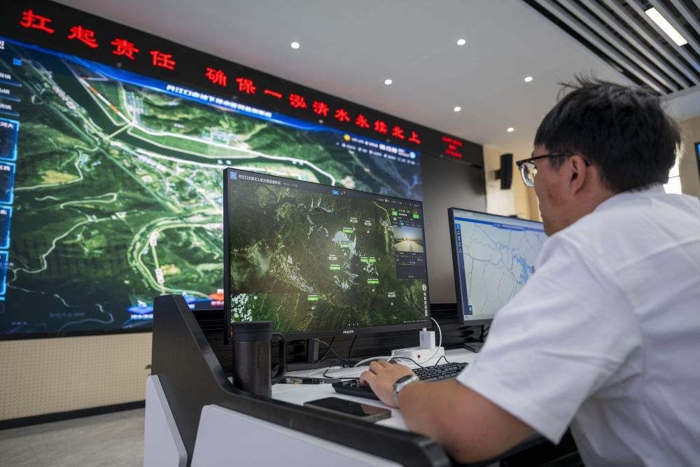 同時(shí),為了“不讓一滴污水進(jìn)入河庫”,“空、天、地、水”守水防線全方位在丹江口庫區(qū)筑牢。通過高空衛(wèi)星、無人機(jī)、環(huán)庫岸線攝像頭、地下雨污管網(wǎng)內(nèi)的監(jiān)測(cè)儀等設(shè)備,工作人員能實(shí)時(shí)監(jiān)測(cè)庫岸線安全、非法垂釣、?;愤\(yùn)輸?shù)惹闆r,重點(diǎn)排污企業(yè)、污水處理廠情況也一目了然。