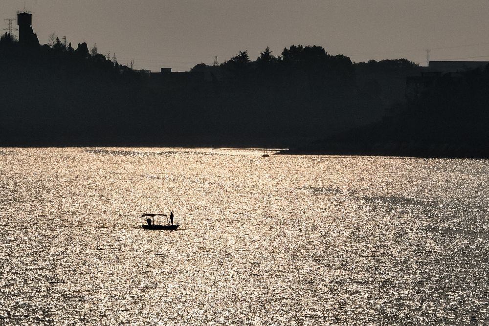 2024年10月28日,清漂員在丹江口水庫作業(yè)(無人機(jī)照片)。