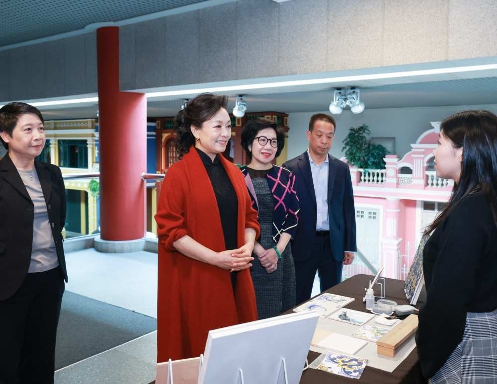 12月19日上午,國家主席習(xí)近平夫人彭麗媛在澳門特別行政區(qū)行政長官賀一誠夫人鄭素貞陪同下,來到澳門博物館參觀。彭麗媛仔細察看館藏文物,深入了解澳門的歷史變遷和中西交融的建筑、行業(yè)、文化生活等情況,同當(dāng)?shù)卮纱u畫制作、木雕等非遺傳承人親切交流。