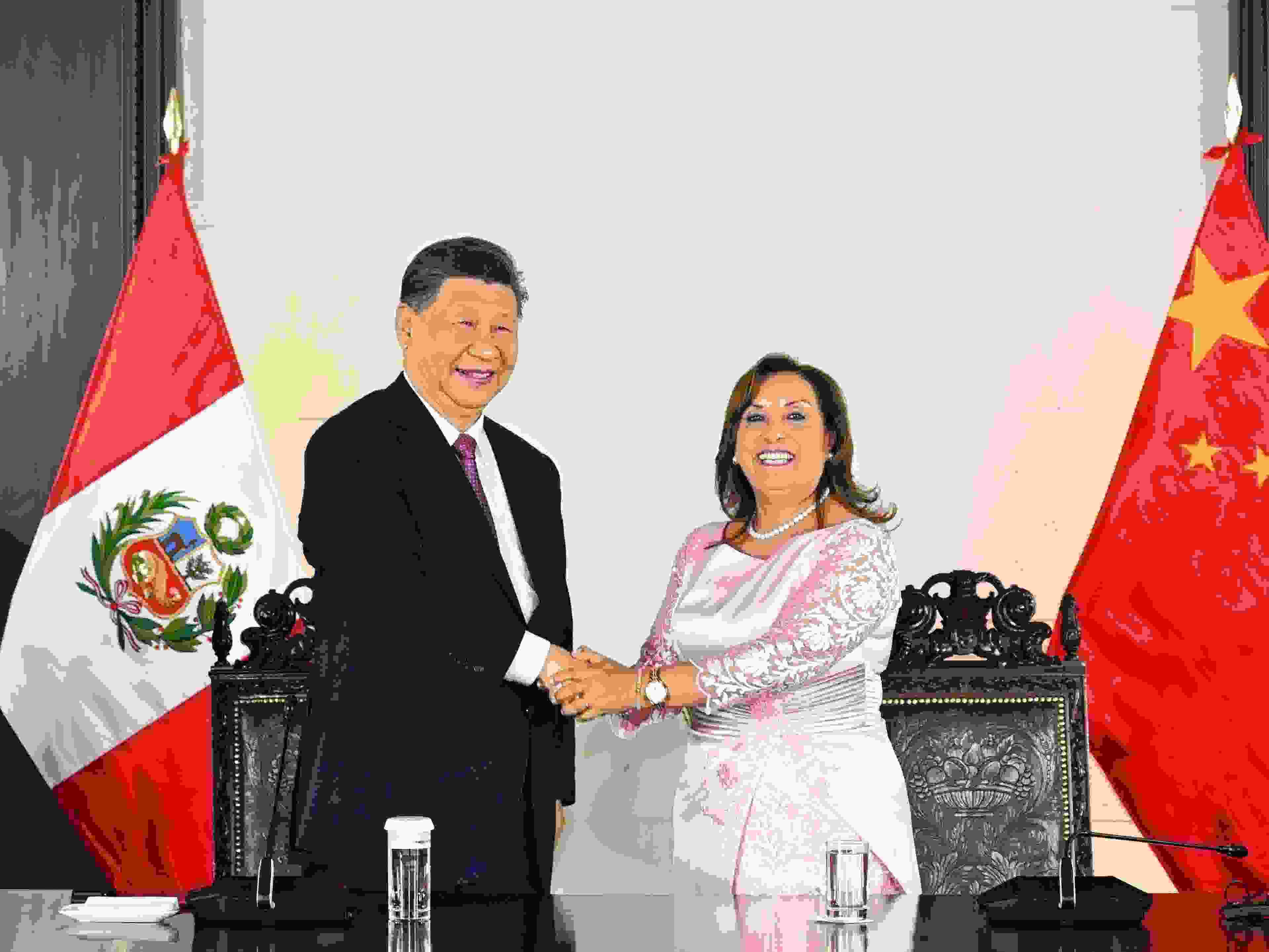 當?shù)貢r間2024年11月14日晚,國家主席習近平同秘魯總統(tǒng)博魯阿爾特在利馬總統(tǒng)府以視頻方式共同出席錢凱港開港儀式。新華社記者 謝環(huán)馳 攝