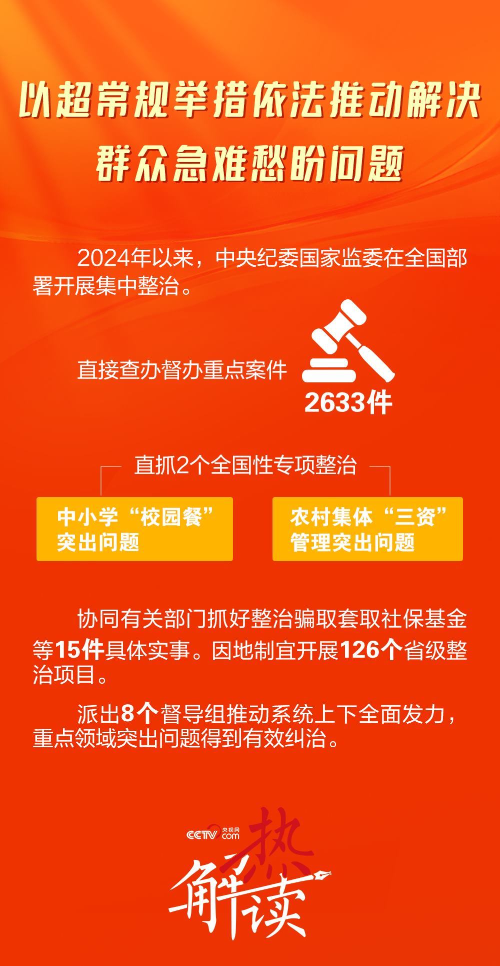2024年1月8日,在二十屆中央紀(jì)委三次全會上,習(xí)近平總書記明確要求懲治“蠅貪蟻腐”,讓群眾有更多獲得感。全會強(qiáng)調(diào)瞄準(zhǔn)教育、就業(yè)、醫(yī)療等民生領(lǐng)域的痛點(diǎn)難點(diǎn)開展集中整治。此次召開的二十屆中央紀(jì)委四次全會,更加明確民生領(lǐng)域腐敗問題整治方向——聚焦“縣以下這一關(guān)鍵環(huán)節(jié)、薄弱環(huán)節(jié)”,直達(dá)正風(fēng)肅紀(jì)反腐“最后一公里”。