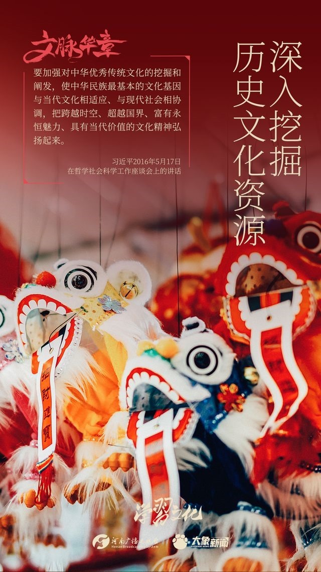 “春節(jié)——中國人慶祝傳統(tǒng)新年的社會實踐”被列入聯(lián)合國教科文組織人類非物質(zhì)文化遺產(chǎn)代表作名錄,彰顯了中華優(yōu)秀傳統(tǒng)文化的深厚底蘊,也是我國歷史文化資源保護的又一成果。習(xí)近平總書記十分重視歷史文化資源的挖掘、利用,多次發(fā)表重要講話,滿載對傳承和發(fā)展中華優(yōu)秀傳統(tǒng)文化的期許。我們一起學(xué)習(xí)。