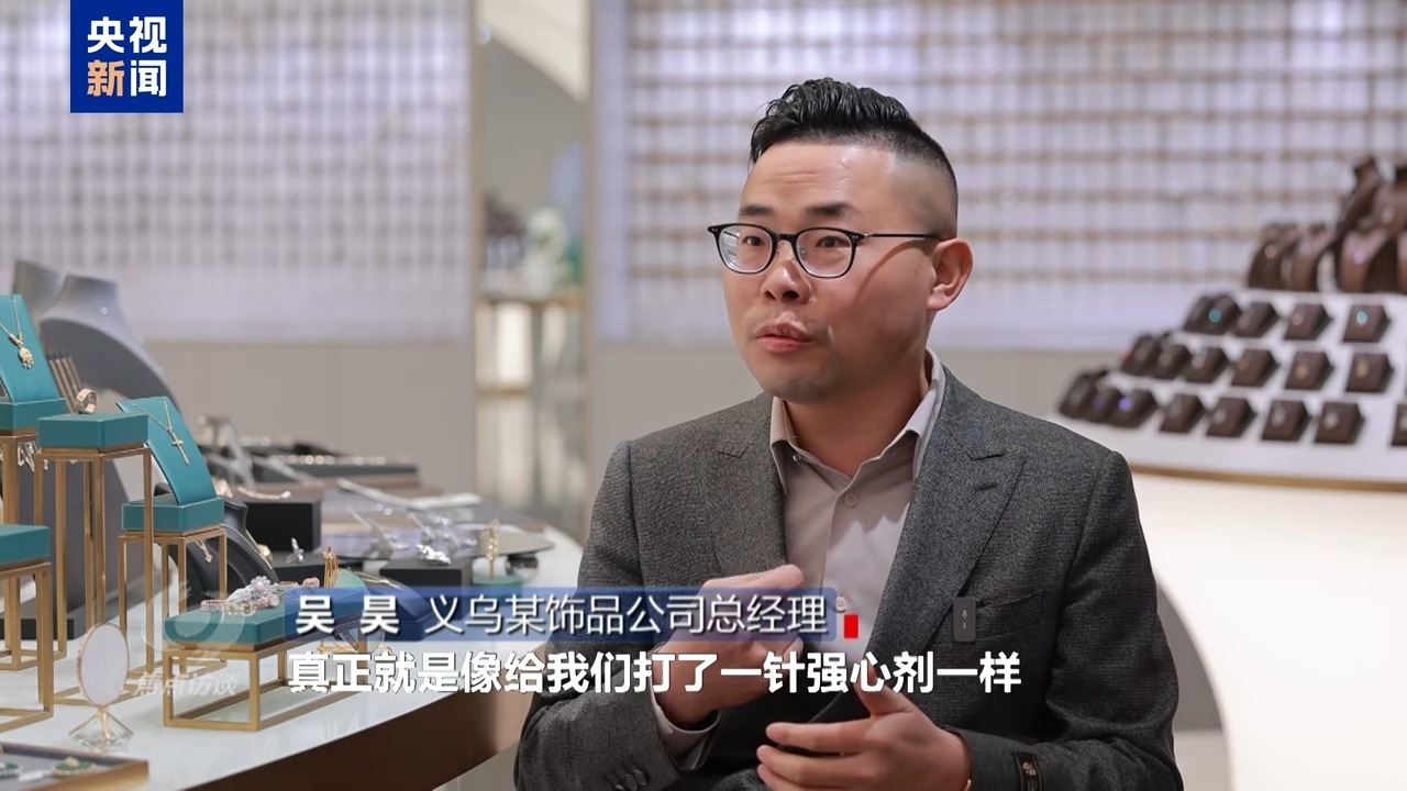 義烏某飾品公司總經(jīng)理 吳昊:總書記提出了國內(nèi)國際雙循環(huán)的事,對我們企業(yè)來說,真正就是像給我們打了一個(gè)強(qiáng)心劑一樣,就是堅(jiān)定了我們未來發(fā)展方向,企業(yè)就沒有那么迷茫了。