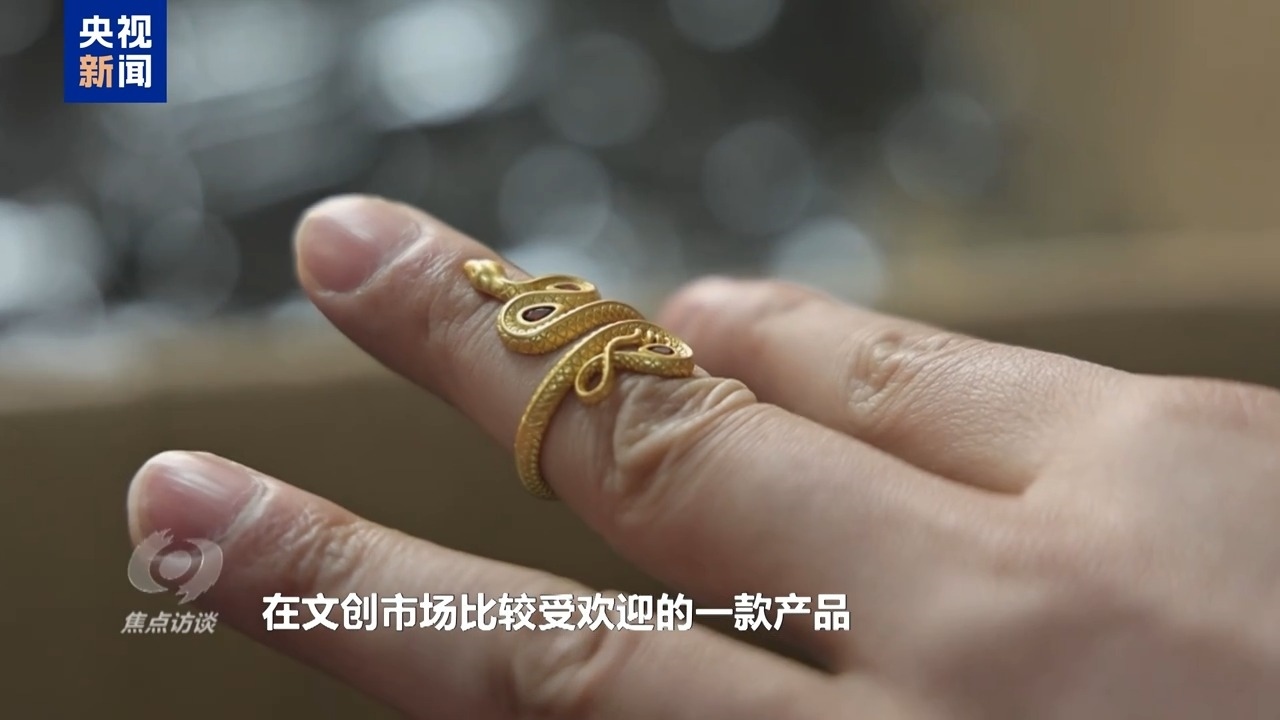 義烏某飾品公司總經(jīng)理 吳昊:這個(gè)是我們給國家博物館做的一款新年生肖款,你看看,這個(gè)是一款戒指,就適合當(dāng)下年輕人,在文創(chuàng)市場比較受歡迎的一款產(chǎn)品。