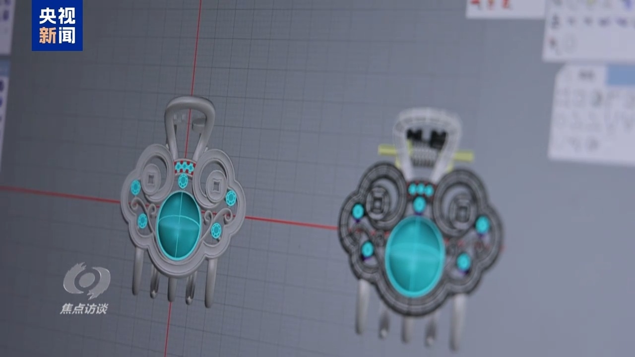 義烏某飾品公司產(chǎn)品設(shè)計(jì)師 周亮:梅蘭竹菊有傳統(tǒng)的一些寓意,然后這些圖案的外形,也是根據(jù)中國傳統(tǒng)樣式來的。材料方面,我主要是想體現(xiàn)中國的那種翡翠的感覺。