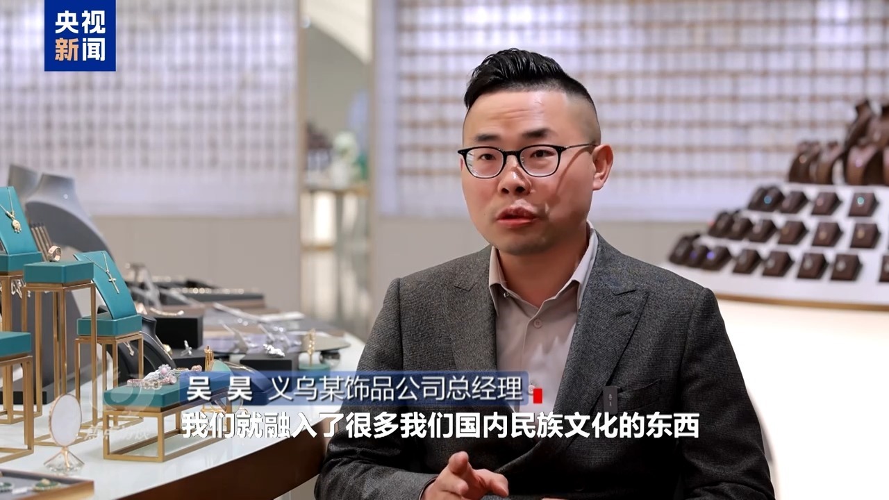 義烏某飾品公司總經(jīng)理 吳昊:在這一塊,融入了很多我們國內(nèi)民族文化的東西,重新組合去創(chuàng)造,他們都會喜歡這個(gè)東西。其實(shí)歸根結(jié)底,還是我們通過這么多年的發(fā)展,我們國家人民的日子越過越好的時(shí)候,這個(gè)民族文化的自信是從國人的骨子里面迸發(fā)出一種自信的體現(xiàn)。