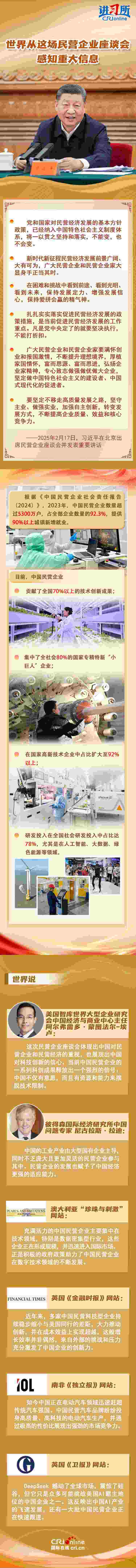 近年來,中國民營企業(yè)向“新”求“質(zhì)”,在科技創(chuàng)新、數(shù)字經(jīng)濟、綠色經(jīng)濟等關鍵領域展現(xiàn)出強大的創(chuàng)新能力和市場活力,國際社會看好中國民營企業(yè)的創(chuàng)新前景,認為這將使中國經(jīng)濟更具韌性。