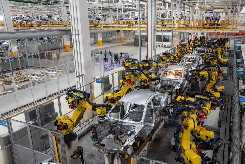 這是2024年3月21日在比亞迪長沙雨花工廠拍攝的自動化生產(chǎn)線。2024年中國新能源汽車產(chǎn)量突破1300萬輛,人工智能、數(shù)字經(jīng)濟等領域創(chuàng)新成果持續(xù)涌現(xiàn),處處都能看到民營企業(yè)大顯身手。