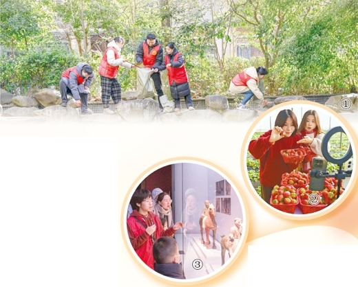 圖①:安徽合肥廬陽區(qū)亳州路街道,黨員志愿者們在撿拾垃圾。