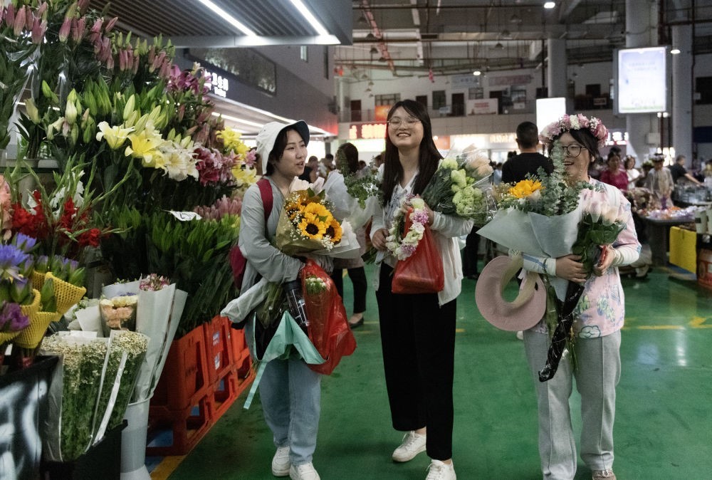 2023年7月13日,游客在昆明斗南花卉市場(chǎng)內(nèi)購(gòu)買鮮花。