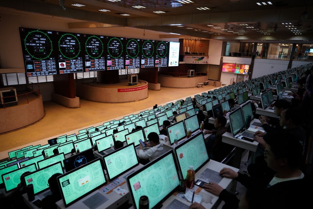 2022年11月11日,花商在云南省昆明市國(guó)際花卉拍賣交易中心參加鮮花競(jìng)拍。