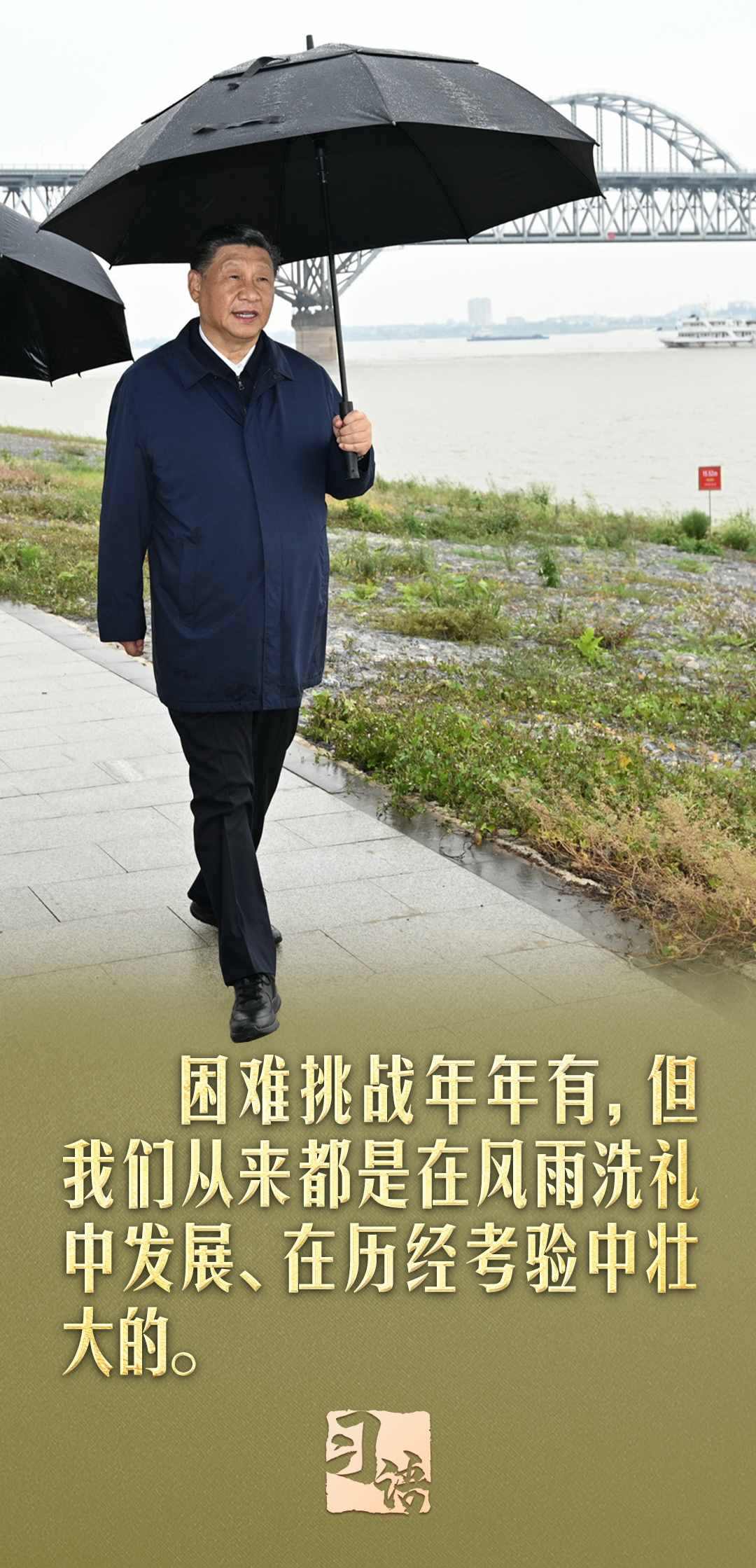 “遵道而行,但到半途須努力;會(huì)心不遠(yuǎn),要登絕頂莫辭勞”。在慶祝中華人民共和國(guó)成立75周年招待會(huì)上,習(xí)近平總書記引用南岳衡山這副對(duì)聯(lián)說道:“我們要居安思危、未雨綢繆,緊緊依靠全黨全軍全國(guó)各族人民,堅(jiān)決戰(zhàn)勝一切不確定難預(yù)料的風(fēng)險(xiǎn)挑戰(zhàn)。任何困難都無法阻擋中國(guó)人民前進(jìn)的步伐!”