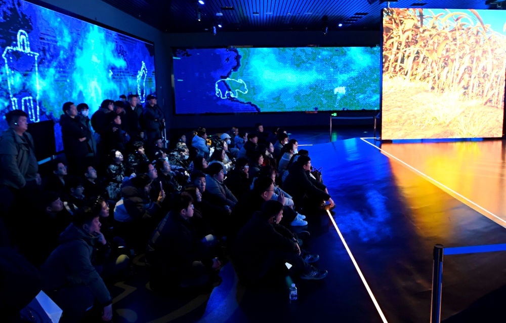 2025年2月21日,游客在安陽殷墟博物館新館數(shù)字展廳內觀展。