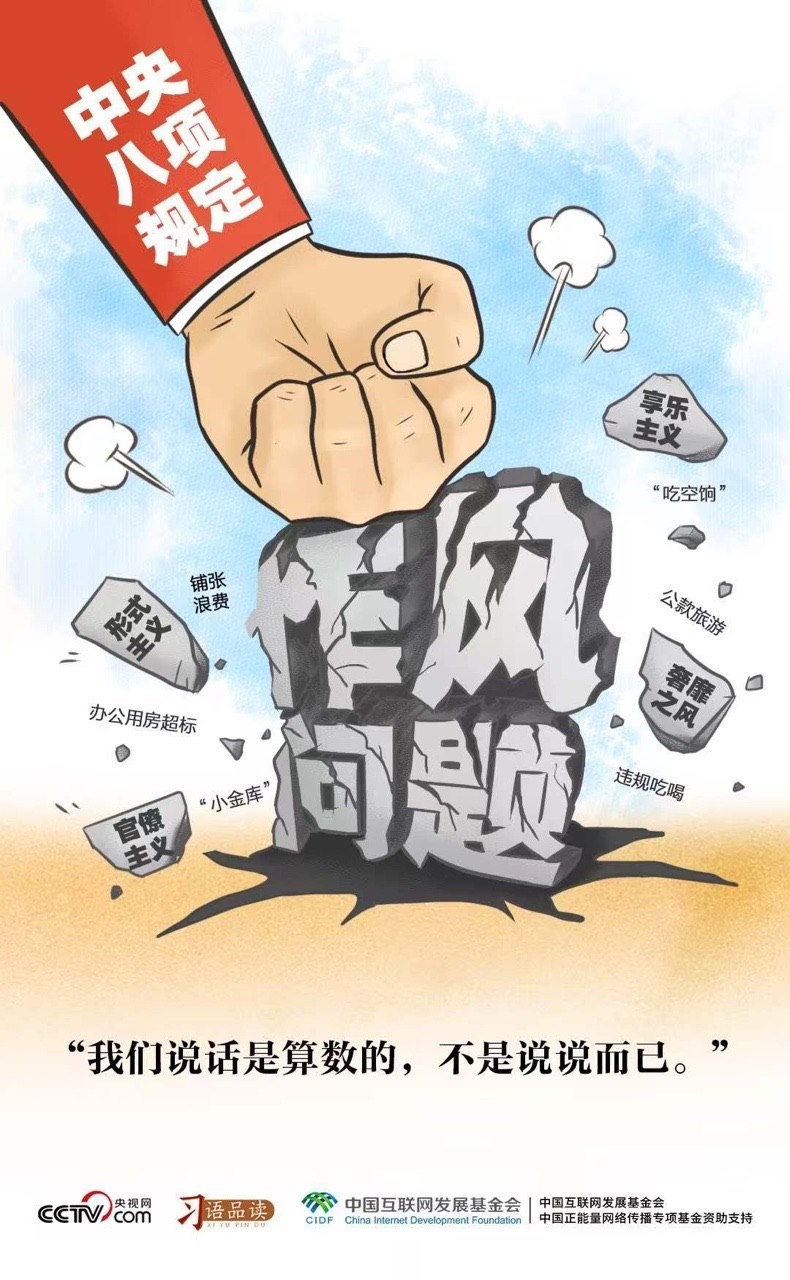 2012年12月,習(xí)近平總書記在主持中央政治局會(huì)議,審議通過《十八屆中央政治局關(guān)于改進(jìn)工作作風(fēng)、密切聯(lián)系群眾的八項(xiàng)規(guī)定》時(shí)說了這樣一番話:“我們說了不是白說,說了必須做到,把文件上寫的內(nèi)容一一落到實(shí)處?!?/p>