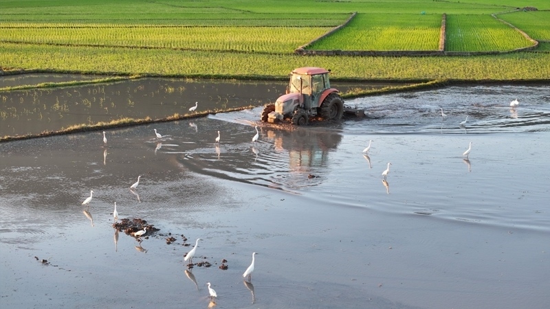 6月10日,在云南省騰沖市和順古鎮(zhèn),農(nóng)民駕駛農(nóng)機(jī)翻耕農(nóng)田準(zhǔn)備栽插水稻秧苗,引來(lái)成群的白鷺覓食、嬉戲(無(wú)人機(jī)照片)。