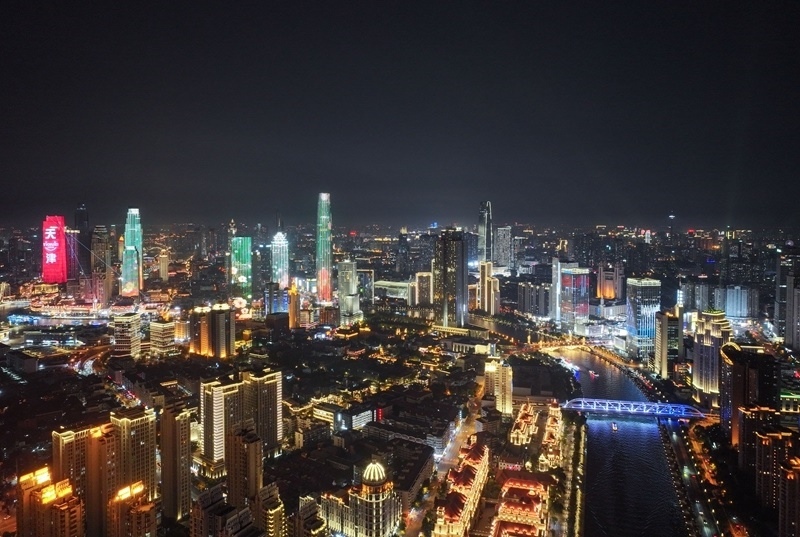 世界經(jīng)濟(jì)論壇第十六屆新領(lǐng)軍者年會(huì)(又稱“夏季達(dá)沃斯論壇”)即將在天津開幕。夜色下的天津燈光璀璨,多座地標(biāo)性建筑點(diǎn)亮樓體燈光,流光溢彩迎接中外賓朋。