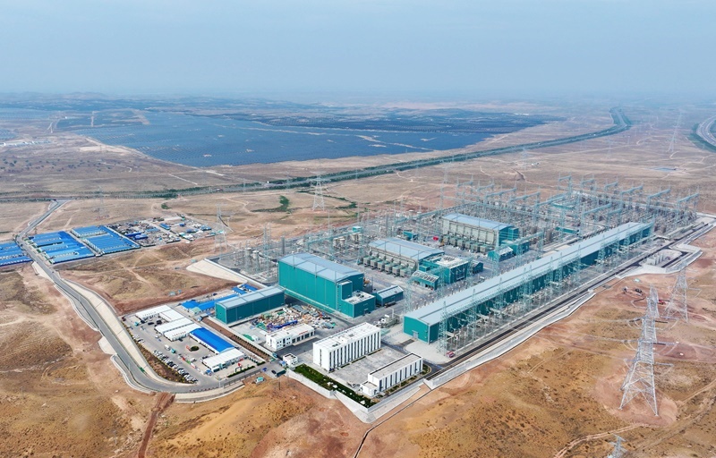 這是6月29日拍攝的“寧電入湘”工程寧夏中衛(wèi)市中寧換流站(無人機(jī)照片)。