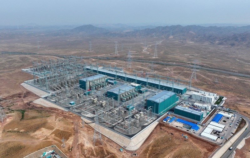 這是6月24日拍攝的“寧電入湘”工程寧夏中衛(wèi)市中寧換流站(無人機(jī)照片)。