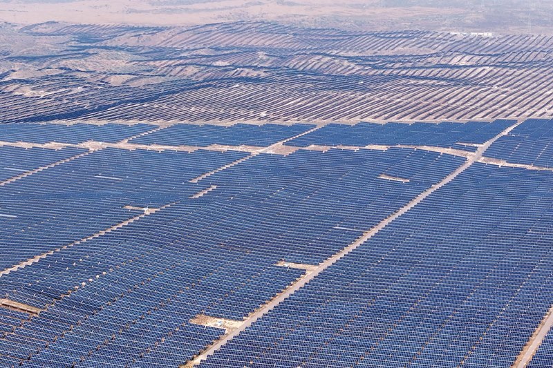這是6月29日拍攝的“寧電入湘”工程寧夏中衛(wèi)市光伏發(fā)電基地(無人機(jī)照片)。