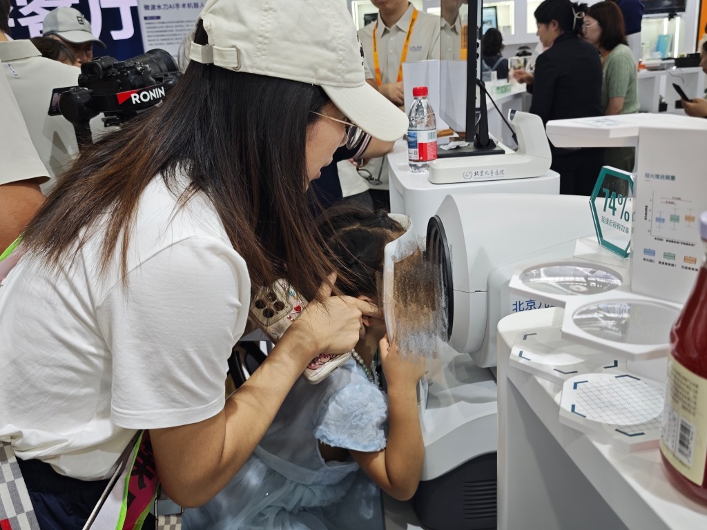 AI兒科醫(yī)生、5G遠(yuǎn)程手術(shù)機(jī)器人、智能眼底照相機(jī)、腦機(jī)接口……走進(jìn)位于北京首鋼園區(qū)2號(hào)館的2025年服貿(mào)會(huì)健康衛(wèi)生服務(wù)專題展,來(lái)自醫(yī)工融合的中國(guó)數(shù)智醫(yī)療產(chǎn)品,讓人更加熱切期盼“未來(lái)醫(yī)院”。