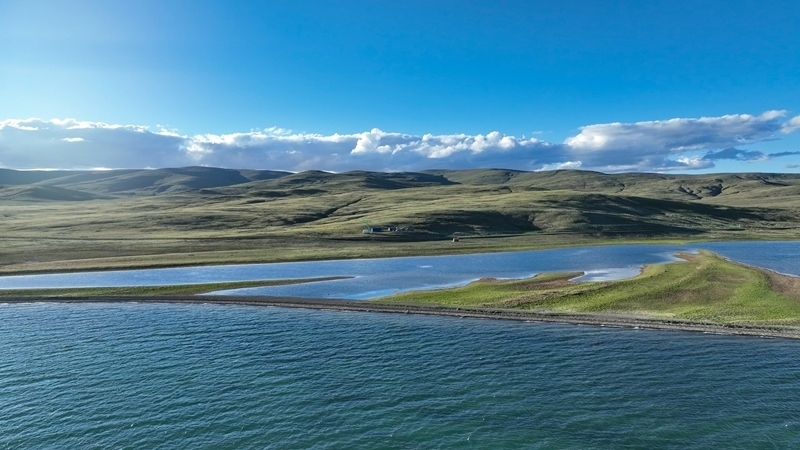 7月25日拍攝的“尕日塘秦刻石”所在地青海省果洛藏族自治州瑪多縣扎陵湖北岸(無(wú)人機(jī)照片)。