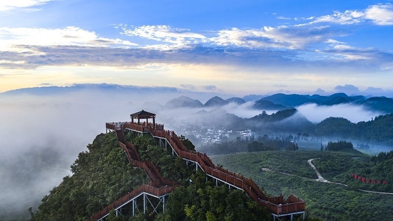 8月25日在云南西疇國家石漠公園拍攝的初秋晨景(無人機(jī)照片) 。