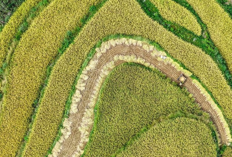 這是9月18日拍攝的重慶市黔江區(qū)五里鎮(zhèn)梯田景色(無人機(jī)照片)。