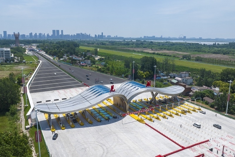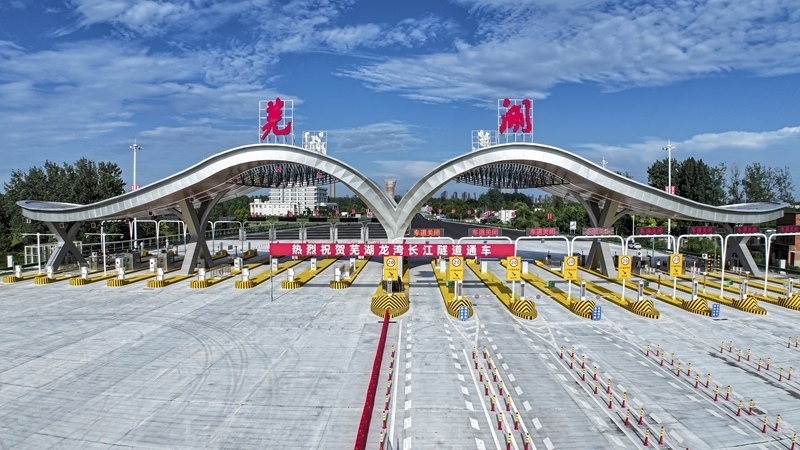 7月1日,車輛通過蕪湖龍灣長江隧道收費站(無人機照片)。