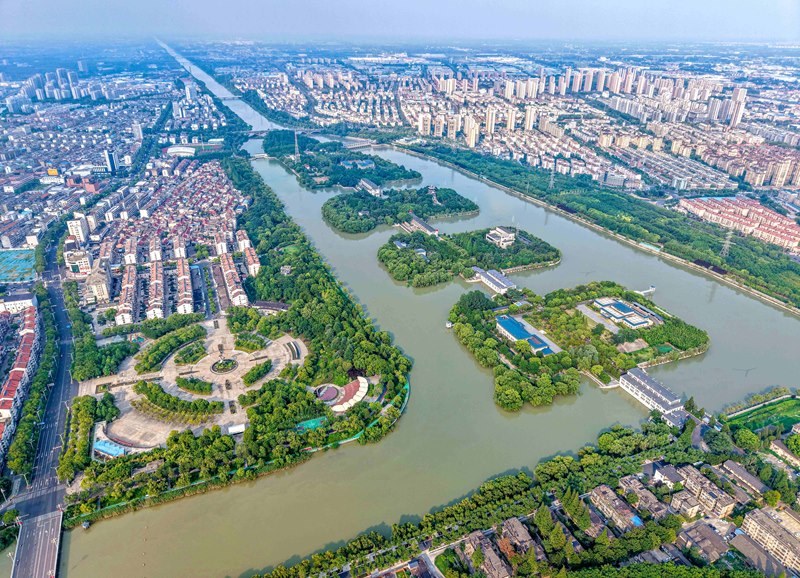 這是位于江蘇省揚州市江都區(qū)的南水北調(diào)東線源頭江都水利樞紐(7月6日攝,無人機照片)。