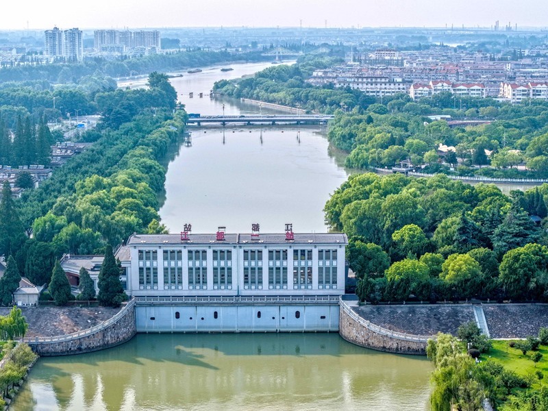 這是位于江蘇省揚州市江都區(qū)的南水北調(diào)東線源頭江都水利樞紐一站(7月6日攝,無人機照片)。