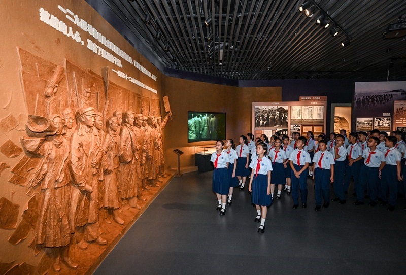 7月7日,北京市第十二中學的少先隊員參觀主題展覽。
