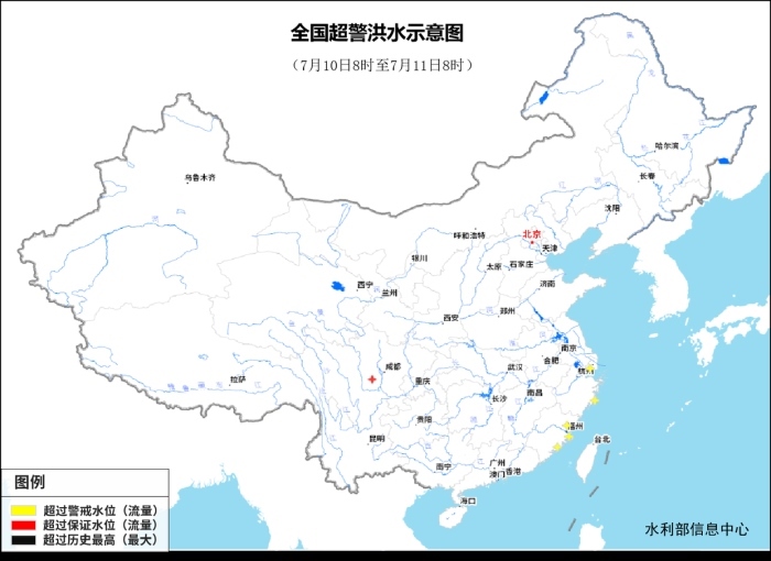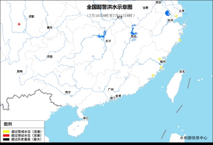 記者從水利部了解到,昨天(7月10日)8時到今天(11日)8時,受降雨影響,四川青衣江支流隴西河、福建沿海九十九溪及敖江支流斌溪等3條中小河流發(fā)生超警以上洪水。