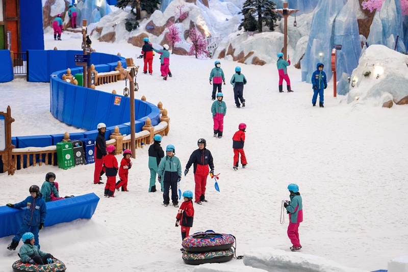 當(dāng)日,湖南長沙發(fā)布當(dāng)?shù)亟衲晔讉€(gè)高溫紅色預(yù)警,部分區(qū)域最高氣溫升至40℃以上。位于長沙大王山旅游度假區(qū)的湘江歡樂城歡樂雪域迎來眾多游客。據(jù)了解,這是湖南最大冰雪綜合體之一,深入地下36米打造,溫度常年保持在零下5℃左右,擁有3萬平方米的滑雪與娛雪區(qū)域,能為游客帶來“夏日玩雪”的奇妙體驗(yàn)。