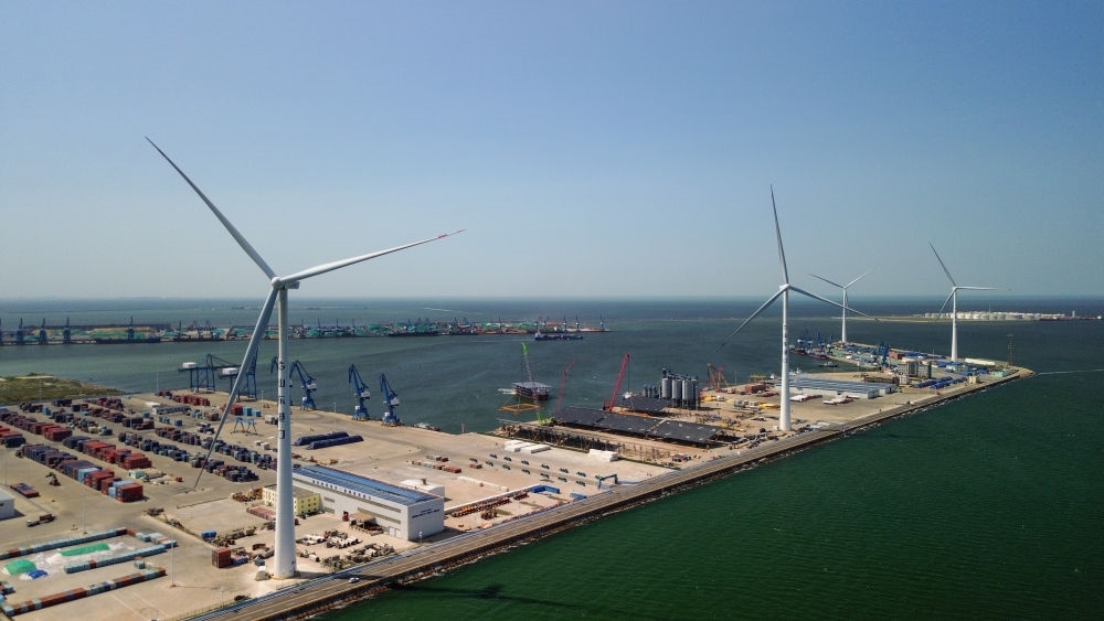 “4臺風(fēng)力發(fā)電機(jī)一年可發(fā)電約7000萬千瓦時,足以覆蓋碼頭設(shè)備及??看暗挠秒娦枨?,冗余電量還能上網(wǎng)銷售?!鄙綎|省港口集團(tuán)濰坊港有限公司黨支部書記、總經(jīng)理孫超說,濰坊港已形成風(fēng)、光、氫“多能互補(bǔ)”的用能結(jié)構(gòu),每年可節(jié)省標(biāo)煤2.1萬噸,減少二氧化碳排放5.7萬噸。