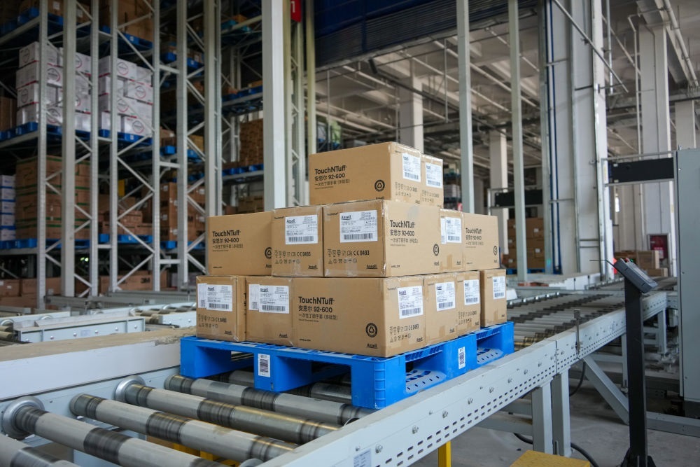 在山東臨沂的新明輝智慧倉儲物流園,貨物在傳輸帶上運(yùn)輸(2025年6月11日攝)。新華社記者 徐速繪 攝