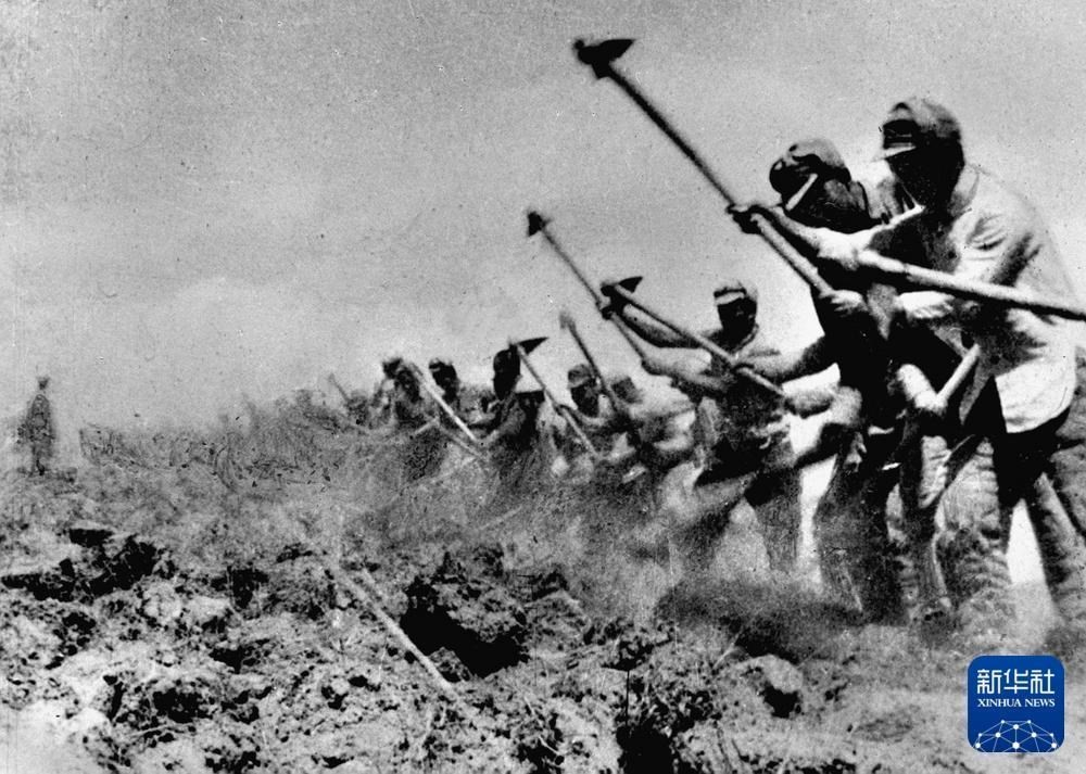 八路軍戰(zhàn)士在南泥灣開(kāi)荒生產(chǎn)。新華社發(fā)