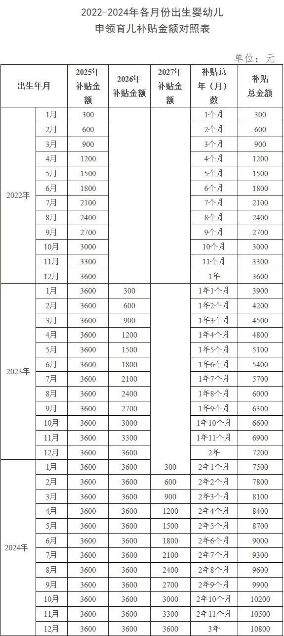 其中,對2025年1月1日之前出生、不滿3周歲的嬰幼兒,按應(yīng)補(bǔ)貼月數(shù)折算計(jì)發(fā)補(bǔ)貼。也就是說,2022年1月1日以后出生的符合條件的嬰幼兒,都可以領(lǐng)取育兒補(bǔ)貼。